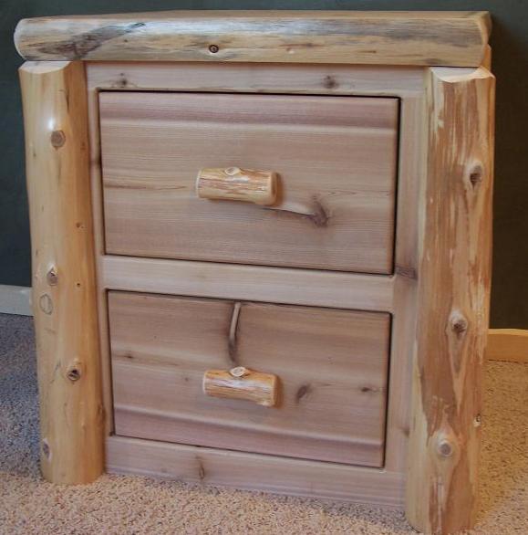 As with all our table tops, our nightstands start out with a solid cedar top, and get trimmed with half logs. After careful hand sanding, these get 3 coats of waterbased poly giving them one of the most durable and "non-yellowing finishes in the industry while bringing out all the beauty that white cedar has to offer.